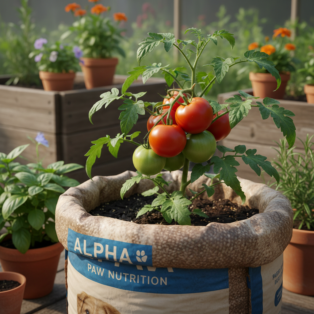 The woven polypropylene material of most premium dog food bags is an ideal, and free, alternative to expensive fabric grow pots. The material is breathable, which promotes healthy root growth through air pruning, and it allows for excellent drainage, preventing root rot. They are lightweight, durable, and can last for several seasons.