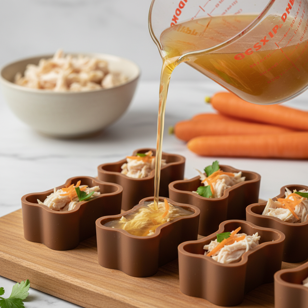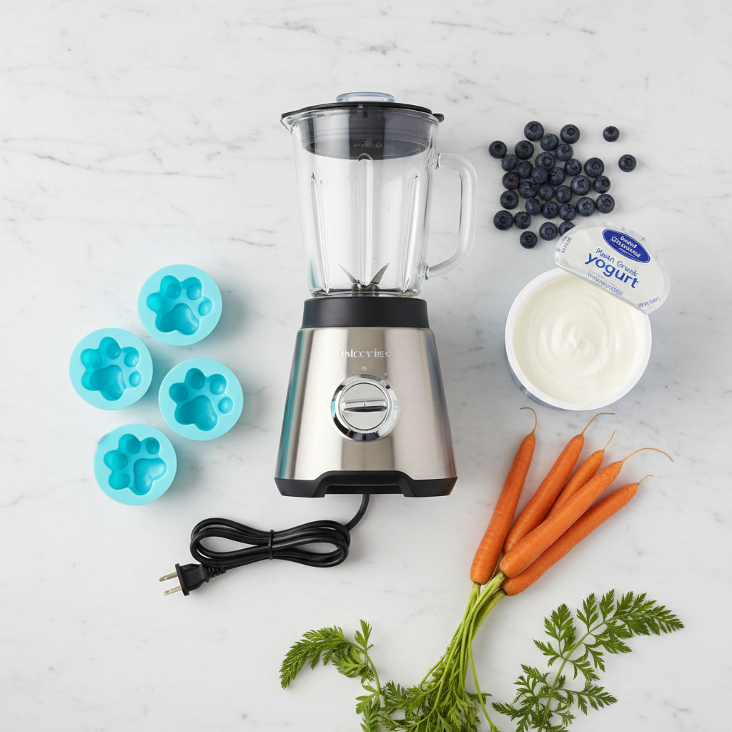 • Silicone Molds or Ice Cube Trays: Fun shapes like paws and bones are great, but standard ice cube trays work just as well. Silicone makes it easy to pop the frozen treats out.