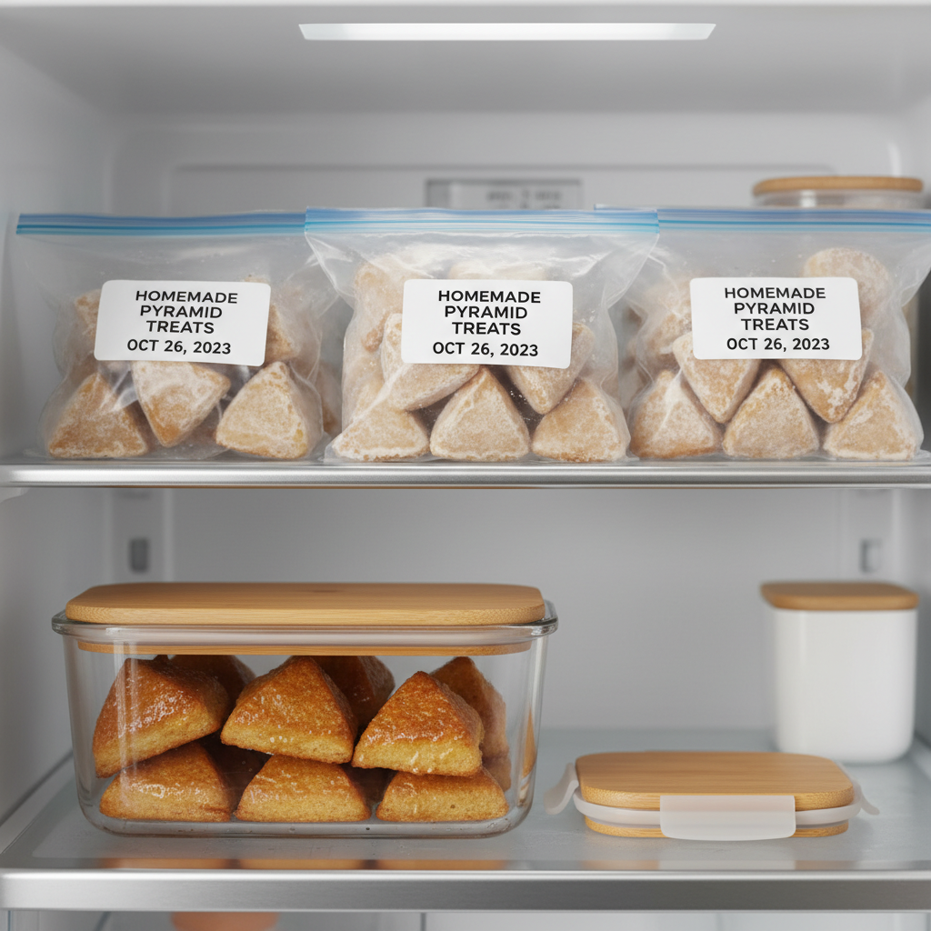 - Freezer (Long-Term): For a supply that lasts months, the freezer is your best friend. Spread the treats in a single layer on a baking sheet and ‘flash freeze’ them for about an hour. Once they are frozen solid, you can transfer them to a labeled freezer bag or container. This prevents them from clumping together into a giant treat-iceberg. They will last in the freezer for up to 6 months.