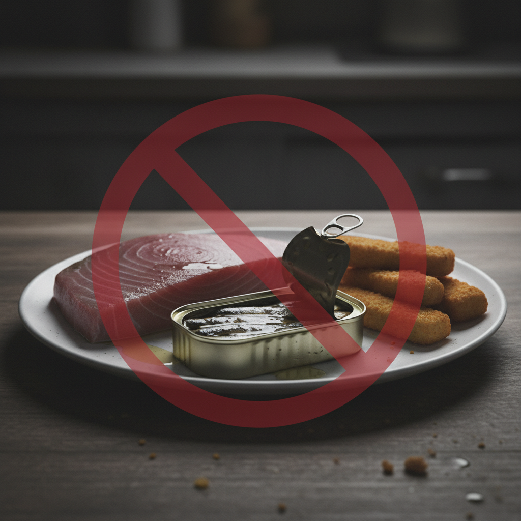 - Processed Fish Products: Anything prepared for human consumption with added ingredients is a red flag. This includes:
