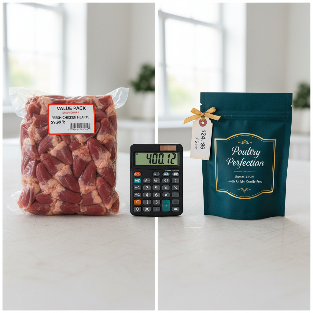 Part of being a nutrition hacker is maximizing nutritional value per dollar. Let’s break down the cost of fresh chicken hearts versus their commercial, freeze-dried counterparts. Prices will vary by location, but the value proposition is clear.