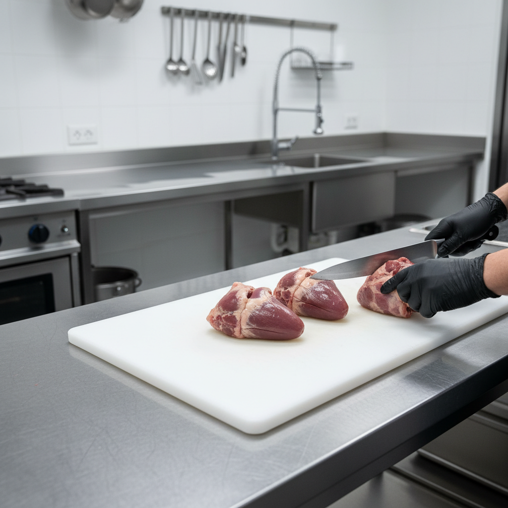 • Using a dedicated cutting board and utensils for raw meat. Do not let raw meat or its juices touch any other food or surfaces.