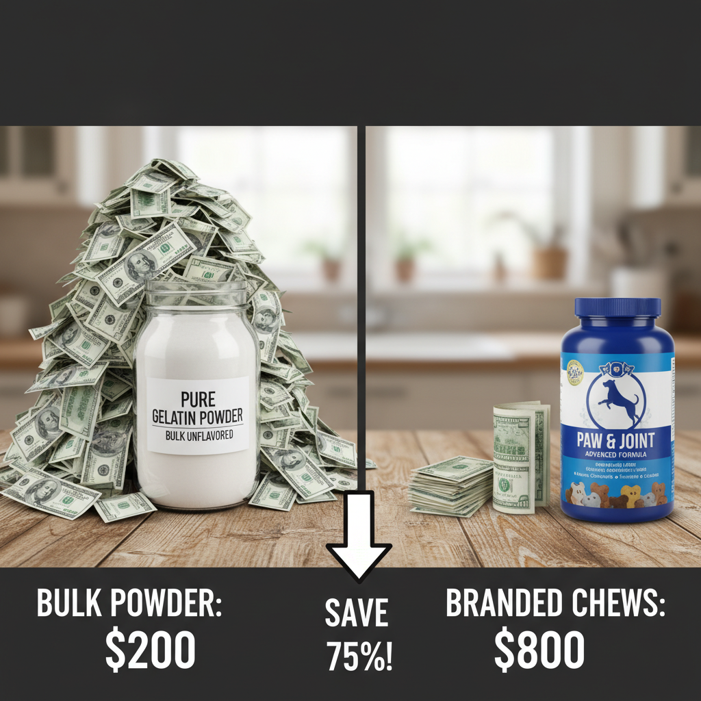 Authority comes from data. Let’s run the numbers and expose the true cost of convenience. We’ll compare the monthly cost of providing our DIY Collagen Jellies to a 50lb dog versus a leading premium brand of joint support chews.