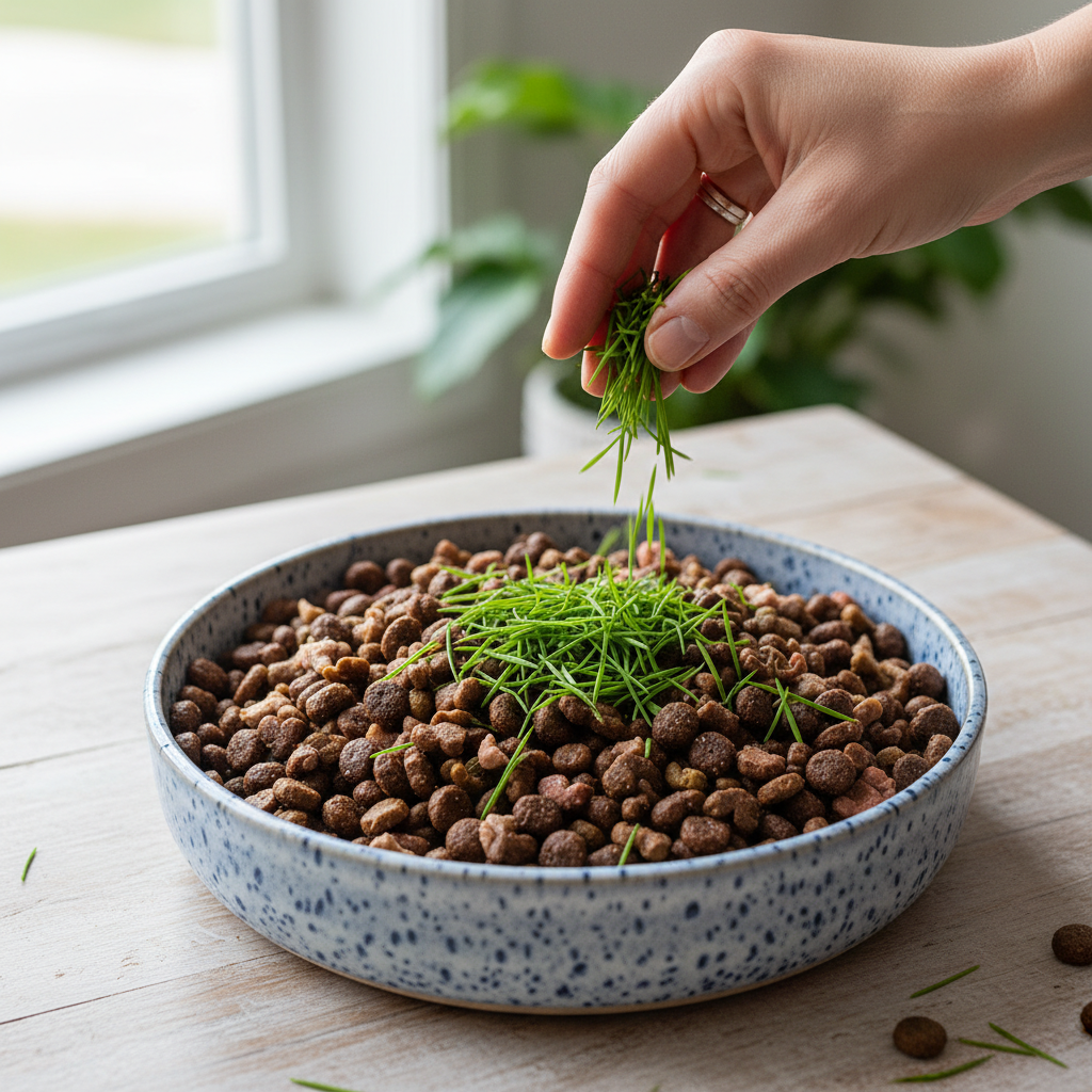 - The Chop & Mix: This is the best method for precise dosage control. Finely chop the harvested grass (a food processor works well) and mix it into their regular food. This ensures they consume it and allows you to measure the amount.