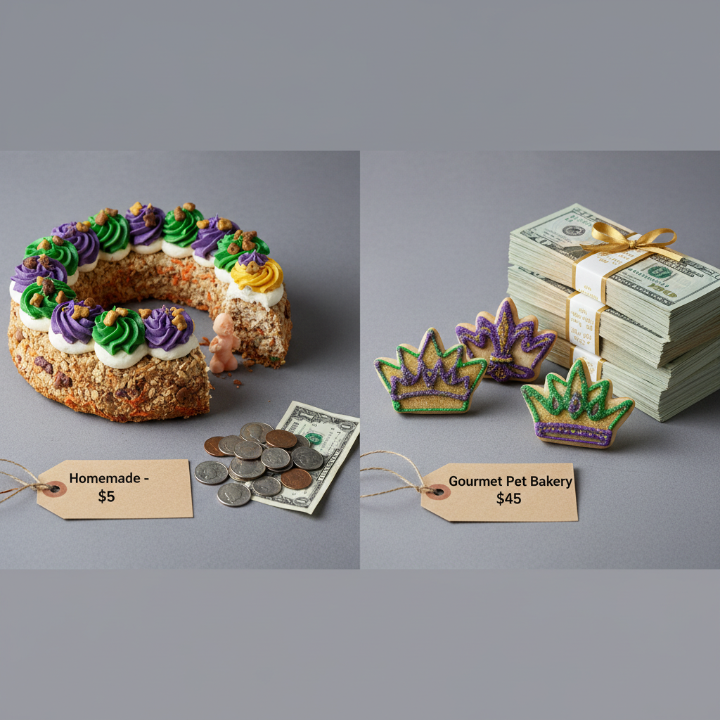 Investing in your dog’s health doesn’t have to mean breaking the bank. Fancy, single-serving ‘pupcakes’ or decorated biscuits from pet bakeries can be absurdly expensive. By making this King Cake at home, you control the quality and the cost. Let’s run the numbers for the entire cake, which yields approximately 10-12 treat-sized servings for a medium dog.