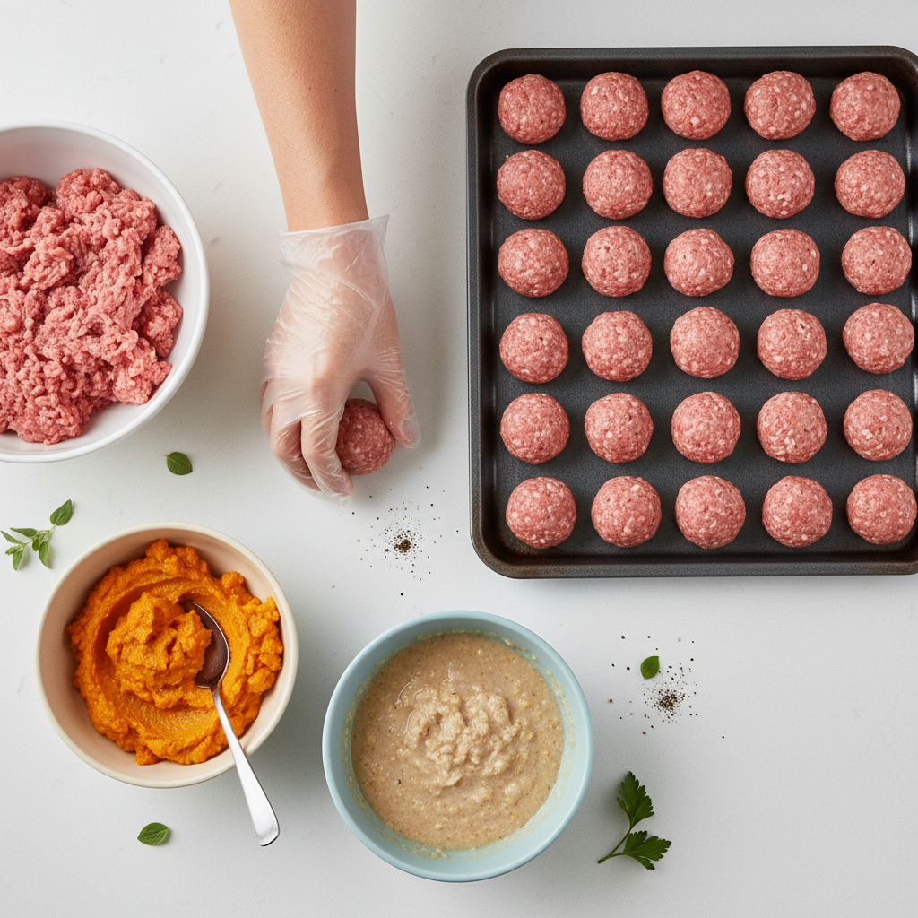 - The Binder (20-30%): This is what holds the meatball together, preventing it from crumbling. The binder must be starchy and smooth. Our top choices are plain pumpkin puree (not pie filling), well-cooked and mashed sweet potato, or thoroughly cooked oatmeal that has been blended into a paste. These ingredients create a sticky matrix that locks the protein together.
