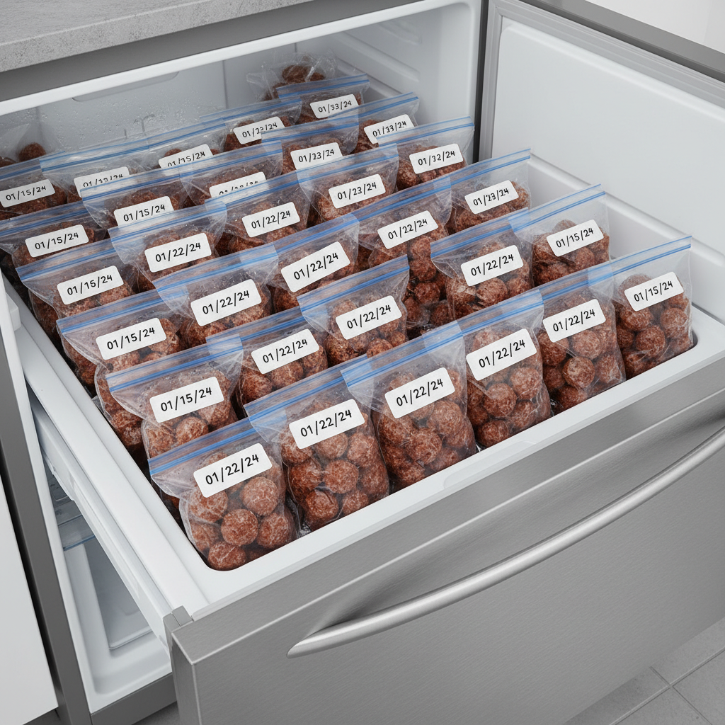 - Flash Freeze: Place the cooled meatballs on a baking sheet in a single layer and put them in the freezer for 1-2 hours. This prevents them from sticking together.