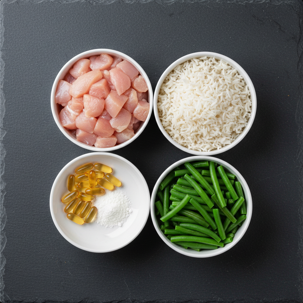 Each component is chosen with forensic precision. The chicken provides high-quality, low-fat protein. The white rice offers digestible energy with minimal phosphorus. The green beans add fiber for digestive health without contributing problematic minerals. The fish oil provides anti-inflammatory benefits. The vet-prescribed supplements are the most critical part, turning this collection of ingredients into a complete and balanced therapeutic meal.