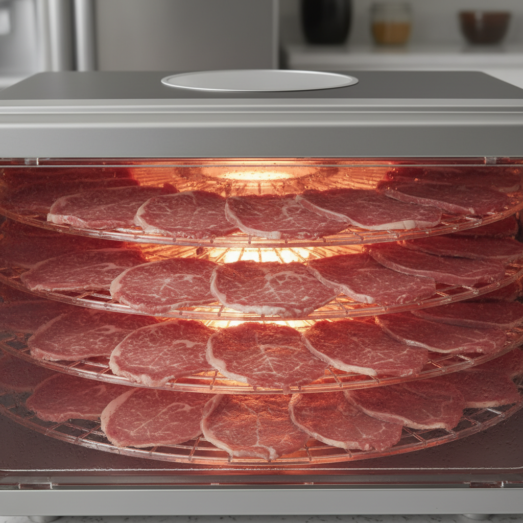 3. Set the Temperature: Set your dehydrator to a temperature between 155°F and 160°F (approximately 70°C). This temperature is high enough to safely kill potential pathogens like Salmonella or E. coli while being low enough to dehydrate the meat without cooking it.