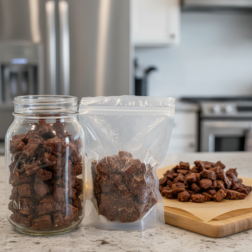 For maximum longevity, the freezer is your best friend. Portion the treats into freezer-safe bags. For the absolute best results, use a vacuum sealer. A vacuum sealer removes all the air, preventing freezer burn and preserving the treats in a pristine state for 6 months or even longer.