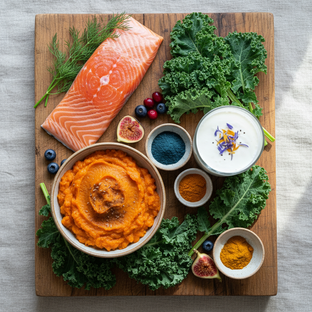 • Prebiotic Fiber: These are the foods that feed the good bacteria. Lightly steamed leafy greens (kale, spinach), asparagus, and pure pumpkin puree are fantastic options.