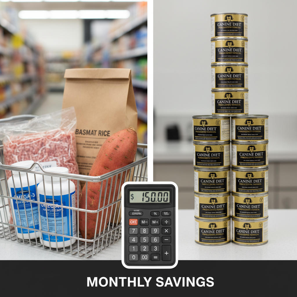 | Carbs/Veggies (Rice, Sweet Potato) | ~$2.50 per batch | N/A (Included in can price) | Whole ingredients are cheaper. |