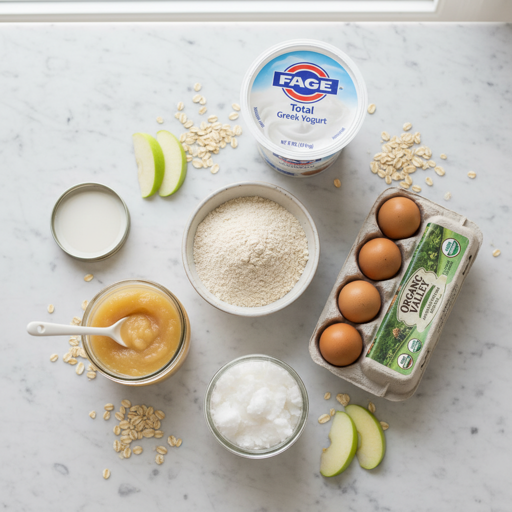 - Combine Wet Ingredients: In a separate, larger bowl, whisk the egg until frothy. Then, whisk in the applesauce, Greek yogurt, melted coconut oil, and optional honey/maple syrup until smooth.