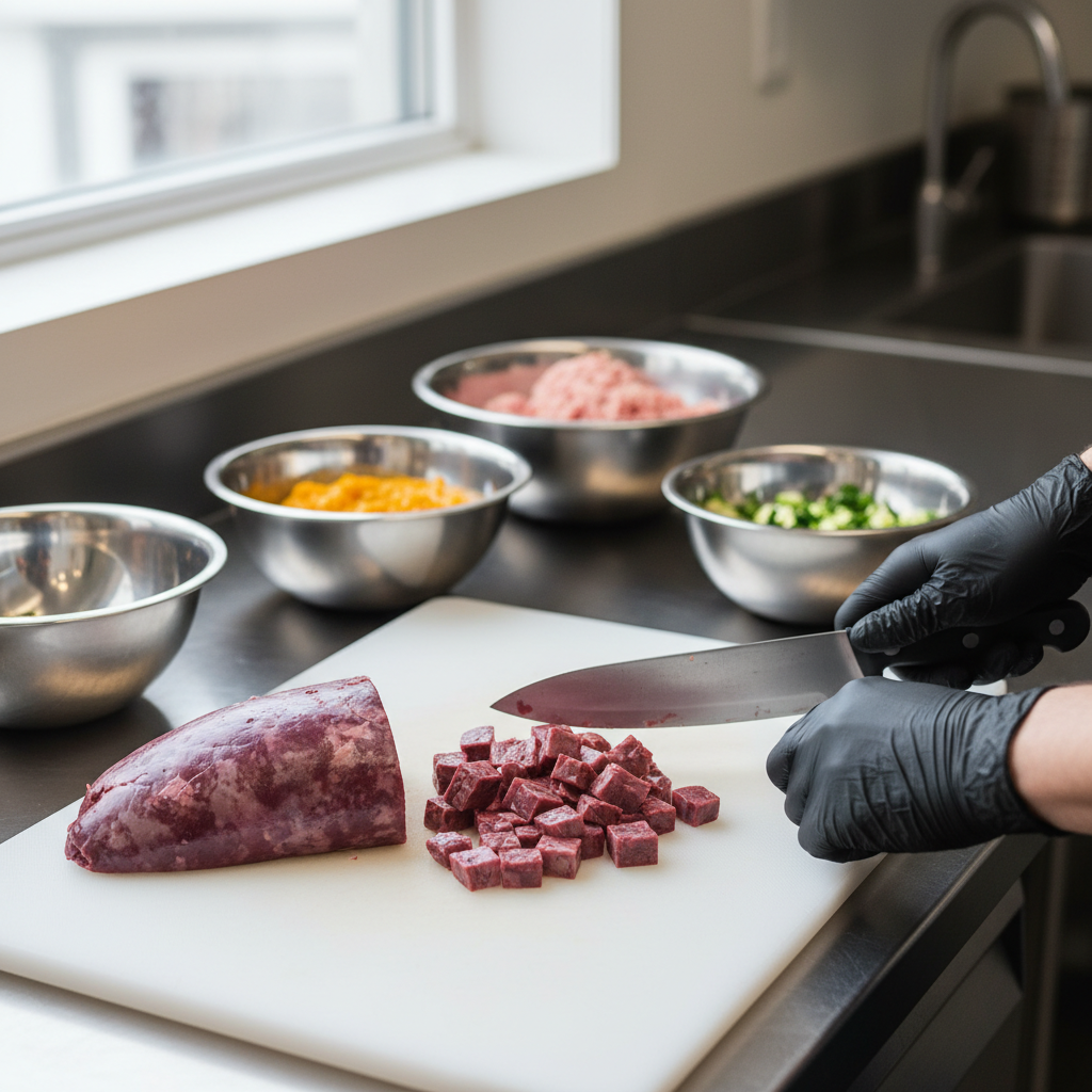 2. Dice or Grind: You can either dice the spleen into small, manageable chunks or run it through a meat grinder. Grinding makes it easier to mix into their main meal, preventing them from picking it out.