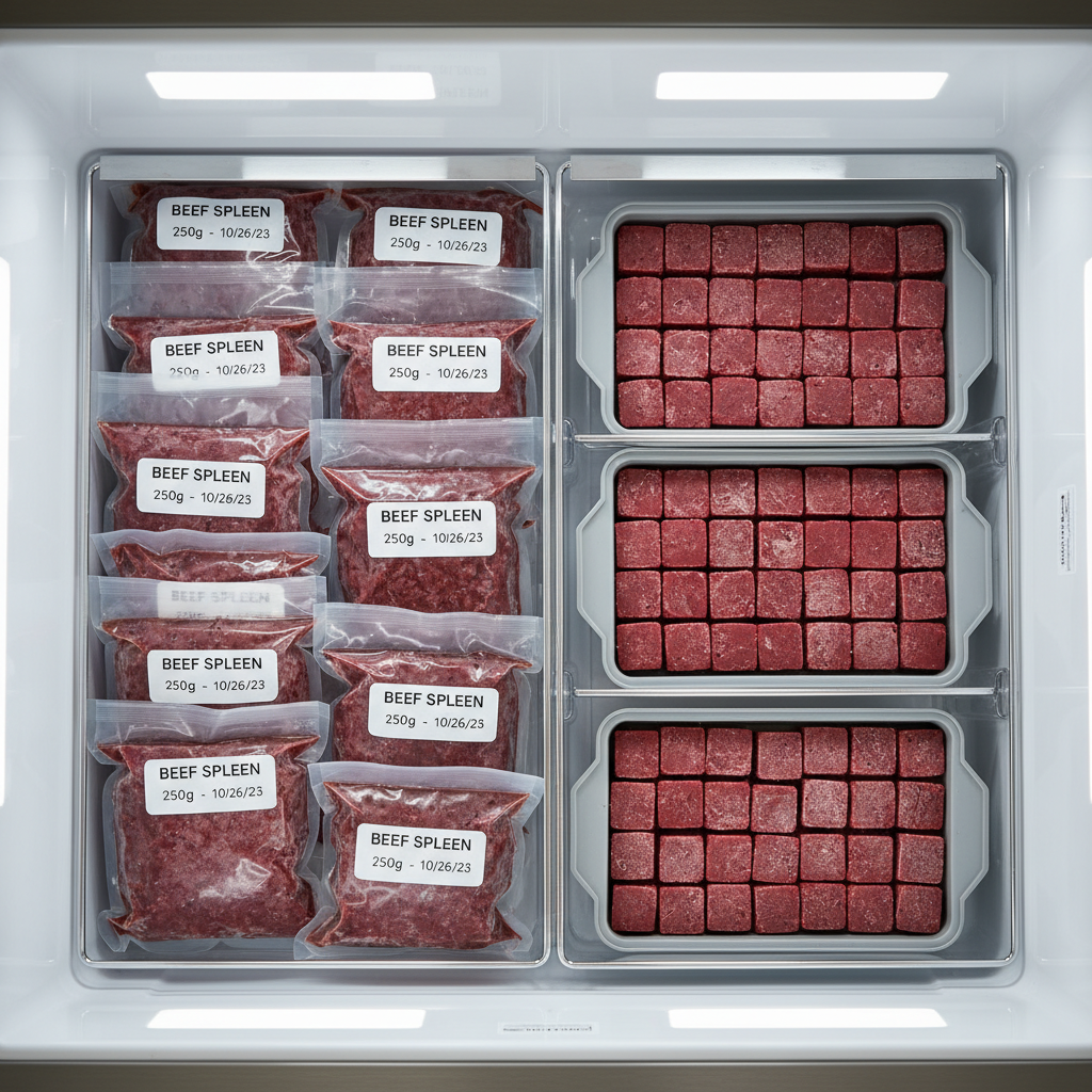 The key to making a DIY raw diet sustainable is efficiency. You don’t have time to prepare every meal from scratch every day. Batch processing your ingredients is the ultimate hack for long-term success. Spleen is perfectly suited for this method.