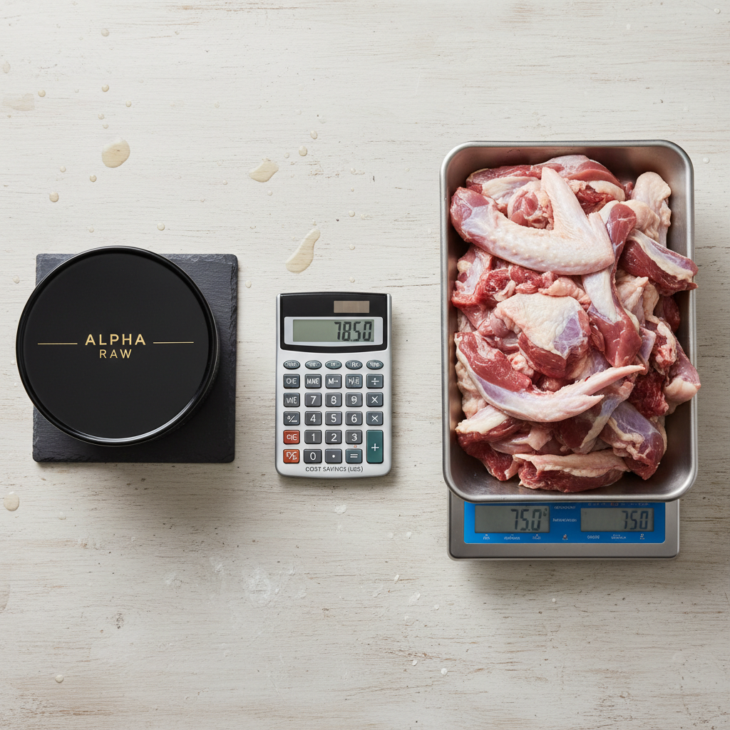 Premium Commercial Raw Duck $9.00 – $12.00 $337.50 – $450.00 Extremely high cost for convenience. Often contains added fillers or is ground, removing the dental benefits of chewing.
