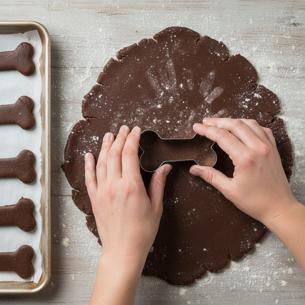 5. Rolling and Cutting: Lightly flour a clean work surface. Turn the dough out and knead it 3-4 times until smooth. Using a rolling pin, roll the dough out to approximately 1/4-inch thickness. Use cookie cutters of your desired shape (bone shapes are a classic) to cut out the cookies.