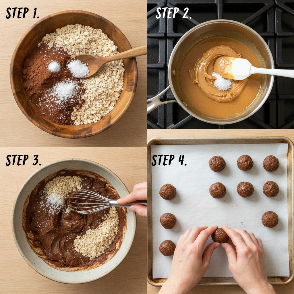 Equipment: A large mixing bowl, a measuring cup set, a spatula or wooden spoon, and a baking sheet lined with parchment paper.