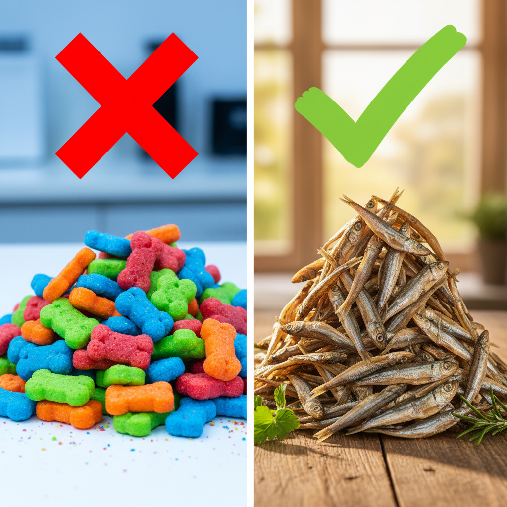 To truly understand the value of capelin, you must compare it to the alternative. The majority of commercial dog treats are nutritional dead zones, engineered for shelf stability and cheap production, not your dog’s health. We call the components of these products ‘Enemy Ingredients’.
