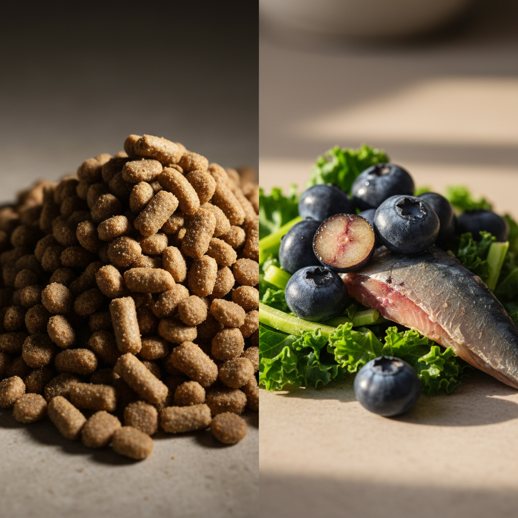 • Ultra-Processed Kibble: The vast majority of commercial dog foods are manufactured using a high-heat extrusion process. This process not only destroys delicate nutrients but also creates advanced glycation end-products (AGEs) that promote inflammation. The starchy binders, synthetic vitamins, and cheap fillers are a constant source of irritation to the gut lining.