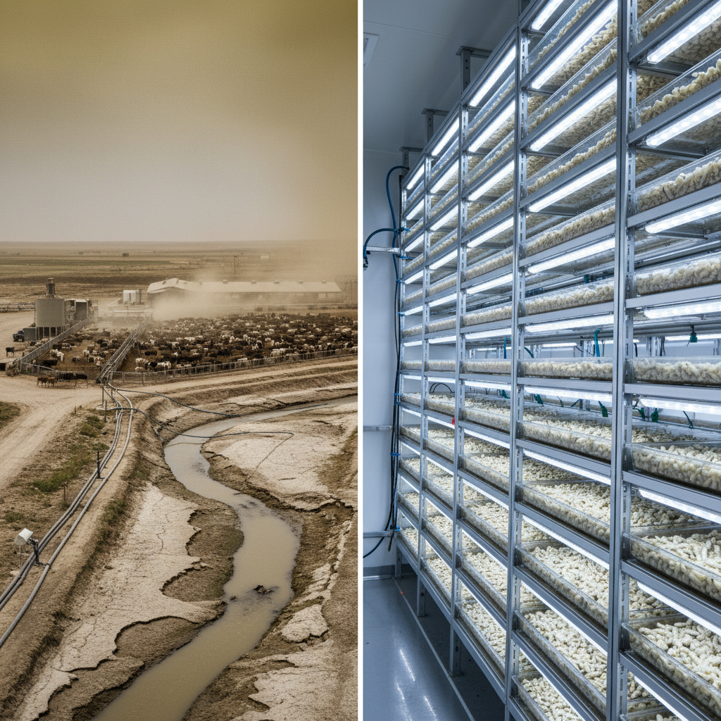 | Sustainability | Excellent (low land/water use, minimal emissions) | Poor (high water use, moderate emissions) | Very Poor (highest land/water use and emissions) |
